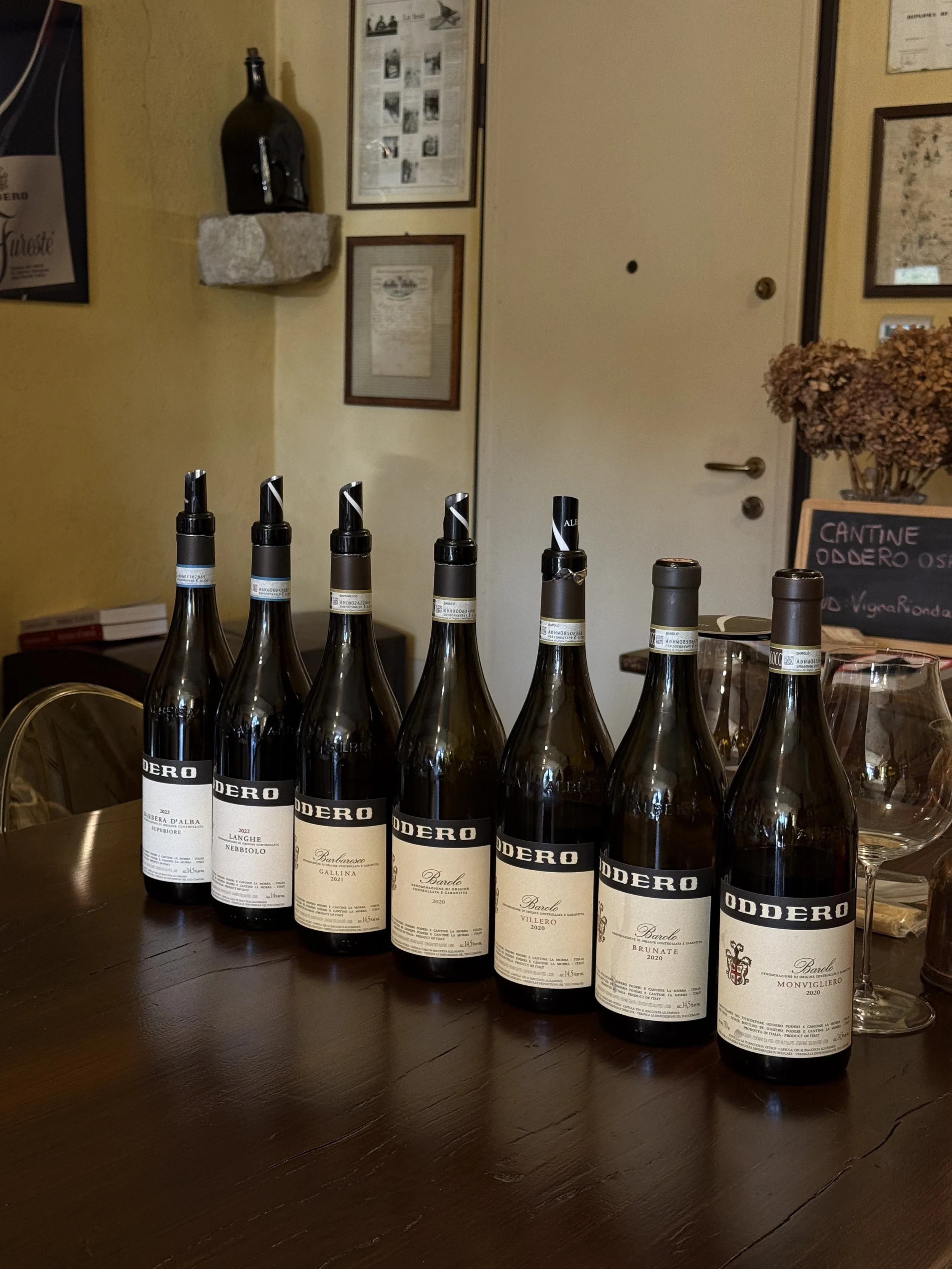 Mi hermana es enóloga y está haciendo la vendimia por el mundo. Ahora está en Oddero. Y este ha sido el motivo de nuestro viaje a Piamonte, la región del Barolo, donde se producen los vinos más emblemáticos de Italia. Oddero tiene más de 150 años de historia y el papel de Giacomo fue clave como precursor vinícola en la zona. Hoy están al frente su hija MariaCristina, y sus nietos, Pietro e Isabella. La familia tiene 35ha repartidas en distintas parcelas. A partir de las cuales producen y clasifican sus vinos, como el de Vignarionda, el viñedo más importante de la zona. con toda producción en uva Nebbiolo, os podéis imaginar de dónde viene el nombre.