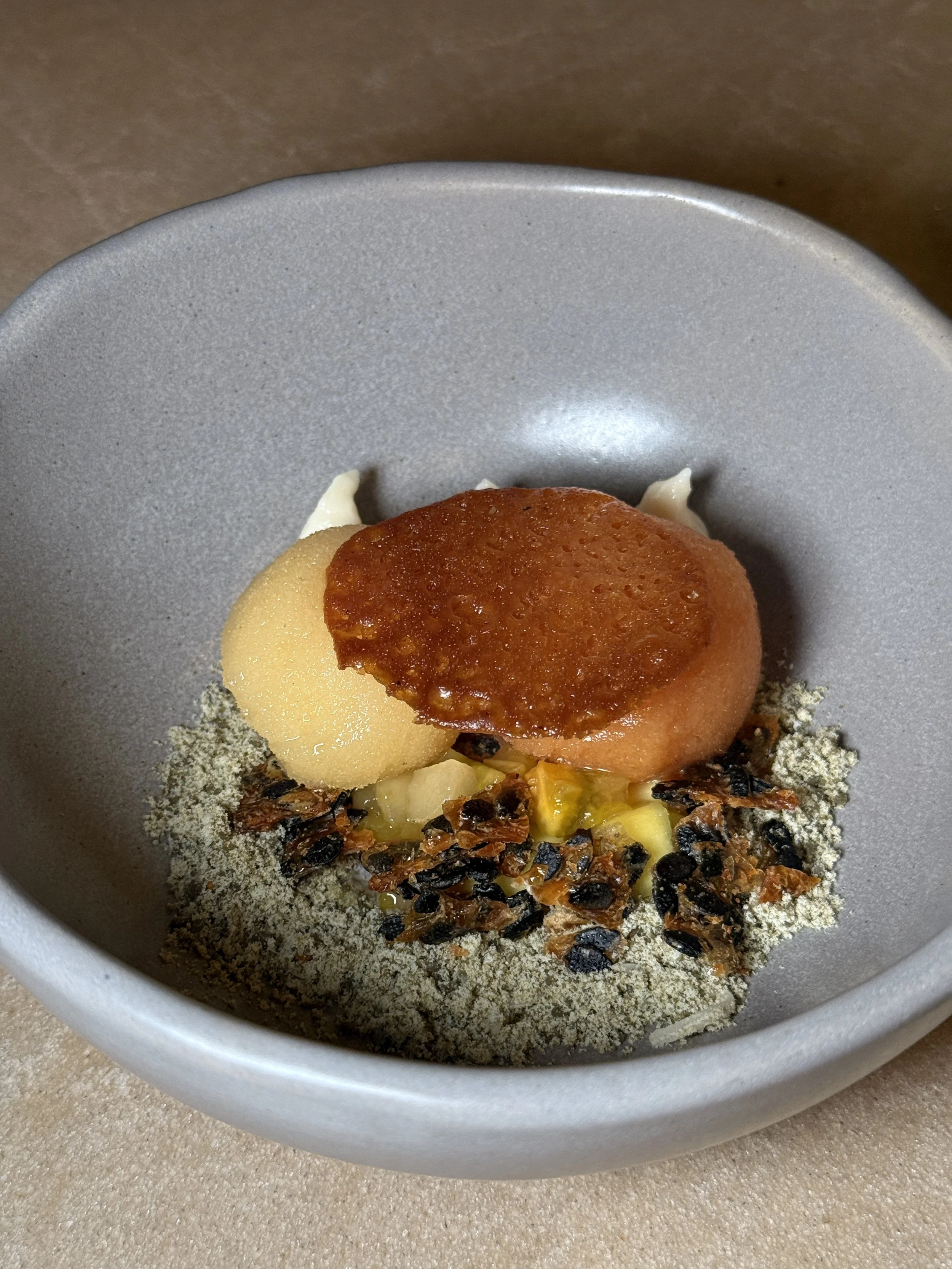 La propuesta gastronómica de Espíritu Medellín resalta lo mejor de los ingredientes colombianos de diferentes regiones, reinterpretados de manera creativa. El menú destaca combinaciones de mar y tierra, como sus famosas gambas con salsa gochujang, sofrito y bisque de morrón, además de platos como el morrillo ahumado, que reflejan la fusión entre la tradición y la modernidad.